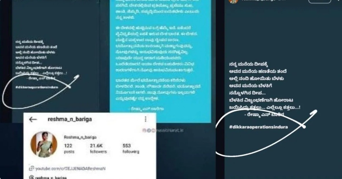 ಇಂತಹ ದೇಶದ್ರೋಹದ ಮನಸ್ಥಿತಿಯನ್ನು ಪ್ರಾರಂಭಿಕ ಹಂತದಲ್ಲೇ ಹೊಸುಕಿ ಹಾಕುವಂತೆ ಎಬಿವಿಪಿ ಒತ್ತಾಯಿಸಿದೆ.ಇನ್ನು ವಿದ್ಯಾರ್ಥಿನಿ ರೇಷ್ಮಾ ಅವರು ಇನ್ಸ್ಟಾಗ್ರಾಂನಲ್ಲಿ ಹಾಕಿದ ಆಪರೇಷನ್ ಸಿಂಧೂರ್ ಕುರಿತ ಪೋಸ್ಟ್ ಬಹಳಷ್ಟು ವೈರಲ್ ಆಗುತ್ತಿದೆ.
