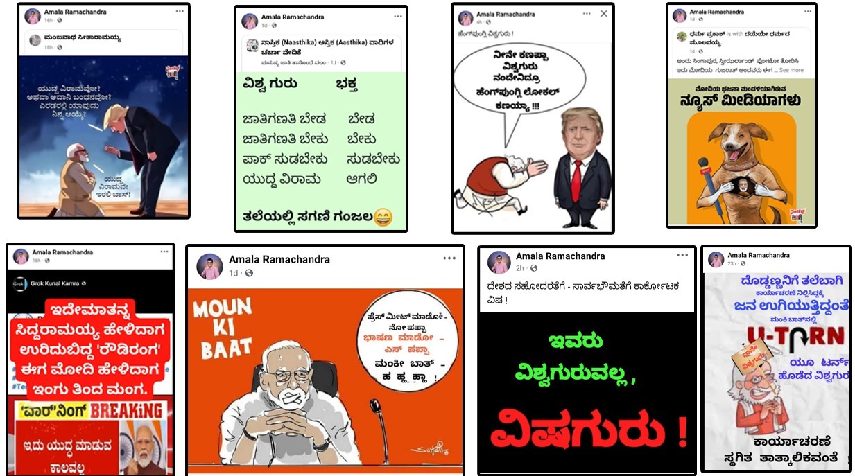 ಅಮಳ ರಾಮಚಂದ್ರ ಅವರು ಮೇ 12ರಂದು ಭಾರತದ ಪ್ರಧಾನಿ ನರೇಂದ್ರ ಮೋದಿಯವರ ಬಗ್ಗೆ ಅಸಹ್ಯಕರವಾಗಿ ಬರಹವನ್ನು ಬರೆದಿರುತ್ತಾರೆ. ಜೊತೆಗೆ ಪ್ರಧಾನಿಯವರನ್ನು ಅಣಕಿಸುವ ಅನೇಕ ಪೋಸ್ಟ್ ಗಳನ್ನು ಅವರು ಫೇಸ್ ಬುಕ್ ಪೇಜ್ನಲ್ಲಿ ಪೋಸ್ಟ್ ಮಾಡಿರುವುದು ದೇಶದ ಉನ್ನತ ಹುದ್ದೆಯಲ್ಲಿರುವ ಪ್ರಧಾನಿಯವರಿಗೆ ಮಾಡಿದ ಅವಮಾನವಾಗಿದೆ.