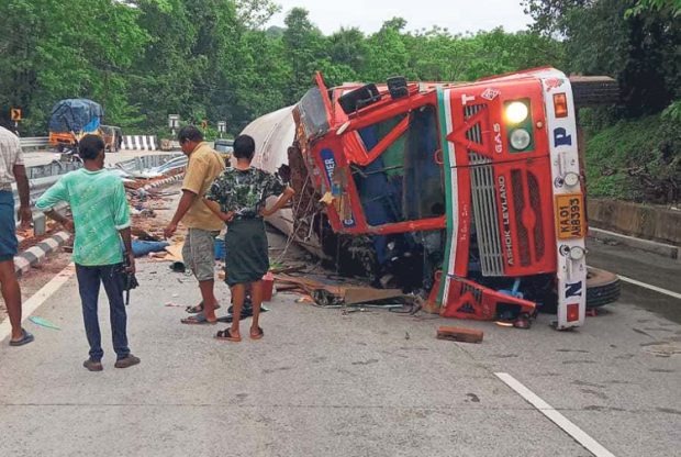 ಉಪ್ಪಿನಂಗಡಿ: ಗ್ಯಾಸ್ ಟ್ಯಾಂಕರೊಂದು ಚಾಲಕನ ನಿಯಂತ್ರಣ ತಪ್ಪಿ ರಸ್ತೆಗೆ ಮಗುಚಿ ಬಿದ್ದ ಘಟನೆ ಶಿರಾಡಿ ಗ್ರಾಮದ ಕೊಡ್ಯಕಲ್ಲು ಎಂಬಲ್ಲಿ ಮೇ 21ರಂದು ನಡೆದಿದೆ.