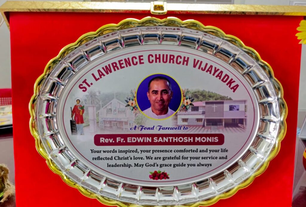 ವಿಜಯಡ್ಕ : ಇಲ್ಲಿನ ಸಂತ ಲಾರೆನ್ಸರ ಚರ್ಚಿನಲ್ಲಿ ವಂ.ಧರ್ಮಗುರು ಎಡ್ವಿನ್ ಸಂತೋಷ್ ಮೊನಿಸ್ ಇವರಿಗೆ ಬೀಳ್ಕೊಡುಗೆ ಸಮಾರಂಭ ನಡೆಯಿತು.