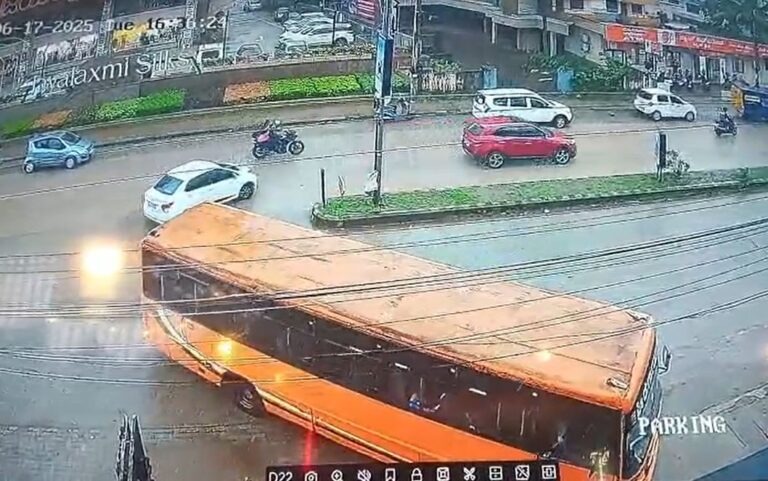 ಉಡುಪಿ: ನಗರದ ಬನ್ನಂಜೆ ಬಳಿ ಖಾಸಗಿ ಬಸ್ ನ ಚಾಲಕ ಏಕಾಏಕಿ ಬ್ರೇಕ್ ಹಾಕಿದ ಪರಿಣಾಮ ಬಸ್ಸು 180 ಡಿಗ್ರಿ ಸುತ್ತಿದ ಭಯಾನಕ ಘಟನೆ ನಡೆದಿದೆ.