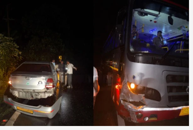 ಅಪಘಾತದಲ್ಲಿ ಕಾರು ಹಾಗೂ ಬಸ್ ಸಂಪೂರ್ಣ ಜಖಂಗೊಂಡಿದೆ ಎನ್ನಲಾಗಿದೆ.