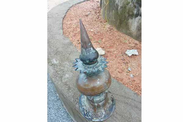 ಕಲಶವು ಕಡಲ ಅಲೆಗಳೊಂದಿಗೆ ತೇಲಿ ಈ ದಡಕ್ಕೆ ಬಂದಿರುವ ಶಂಕೆ ಇದೆ. ಇದು ದೇವಸ್ಥಾನದ ಶಿಖರ ಕಲಶವಾಗಿದ್ದು, ಸುಮಾರು 3 ಕೆ.ಜಿ ತೂಕದ ತಾಮ್ರದ ಕಲಶವಾಗಿದೆ.