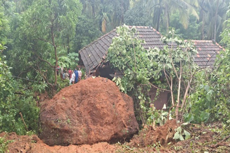ಚಂದ್ರಗಿರಿ ನಡಕ್ಕಾಲ್ ನ ಮಿತೇಶ್ ಎಂಬವರ ಮನೆ ಸಮೀಪದ ಗುಡ್ಡ ಜುಲೈ 17ರಂದು ರಾತ್ರಿಯ ಭೀಕರ ಮಳೆಗೆ ಕುಸಿದಿದ್ದು ಬೃಹತ್ ಕಲ್ಲು ಸಹಿತ ಮಣ್ಣು ಮನೆಯ ಒಂದು ಪಾರ್ಶ್ವದ ಮೇಲೆ ಕುಸಿದು ಅವಘಡಕ್ಕೆ ಕಾರಣವಾಗಿದೆ.