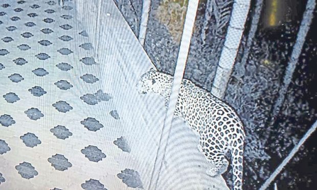 ಮನೆಯ ಕಾಂಪೌಂಡ್ ಮೇಲೆ ಬಂದ ಚಿರತೆ ನಾಯಿಗಳ ಮೇಲೆ ದಾಳಿಗೆ ಯತ್ನಿಸಿದೆ. ಆದರೆ ನಾಯಿಗಳ ಅರಚಾಟಕ್ಕೆ ಚಿರತೆ ವಾಪಾಸ್ಸಾಗಿದೆ.